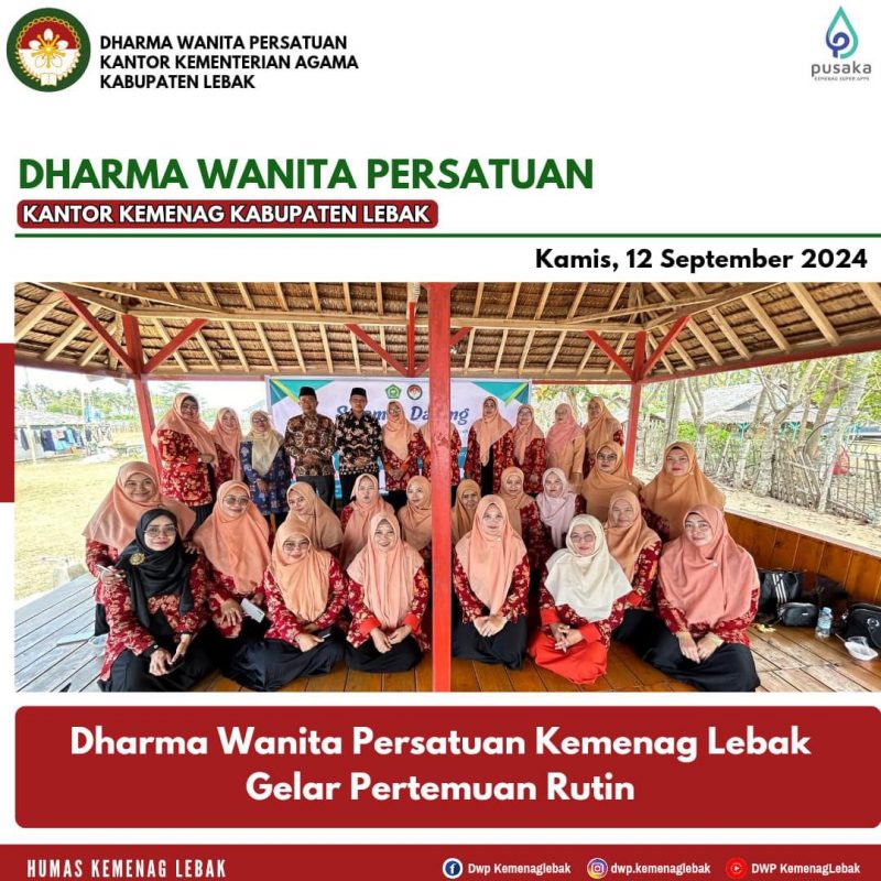 Acara pertemuan rutin ini diselenggarakan oleh Anggota DWP Wilayah Zona V diantaranya KUA Kecamatan Banjarsari, Malingping, Wanasalam, Cihara, Panggarangan, dan MTsN 3 Lebak pada hari Kamis, 12 September 2024. Turut hadir dalam acara tersebut Kepala Kantor Kemenag Lebak selaku Pembina DWP, Masyhudi, Kasubbag TU, Sudirman, Ketua DWP Kemenag Lebak, Ny. Fathonah Masyhudi, Wakil Ketua DWP Ny. Eros Rosdiana Sudirman, Pengurus dan Anggota DWP Kantor Kemenag Lebak.