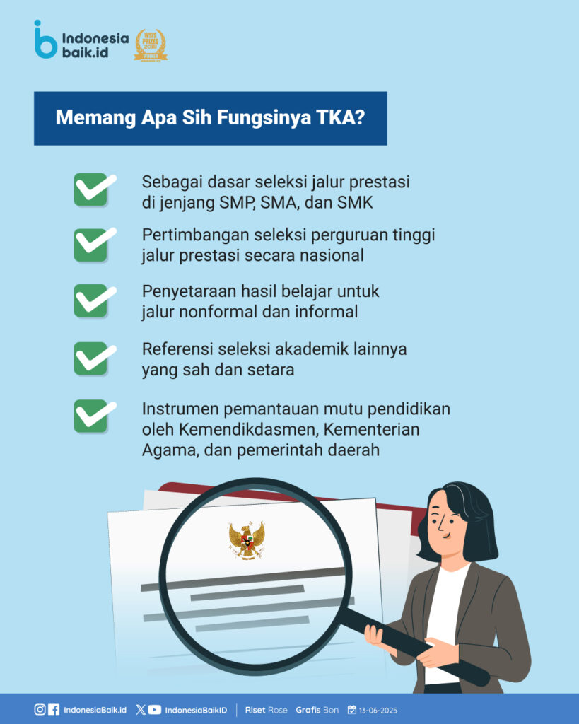 Dengan adanya TKA, sistem pendidikan Indonesia kini memiliki alat ukur yang lebih standar dan merata untuk semua anak bangsa.