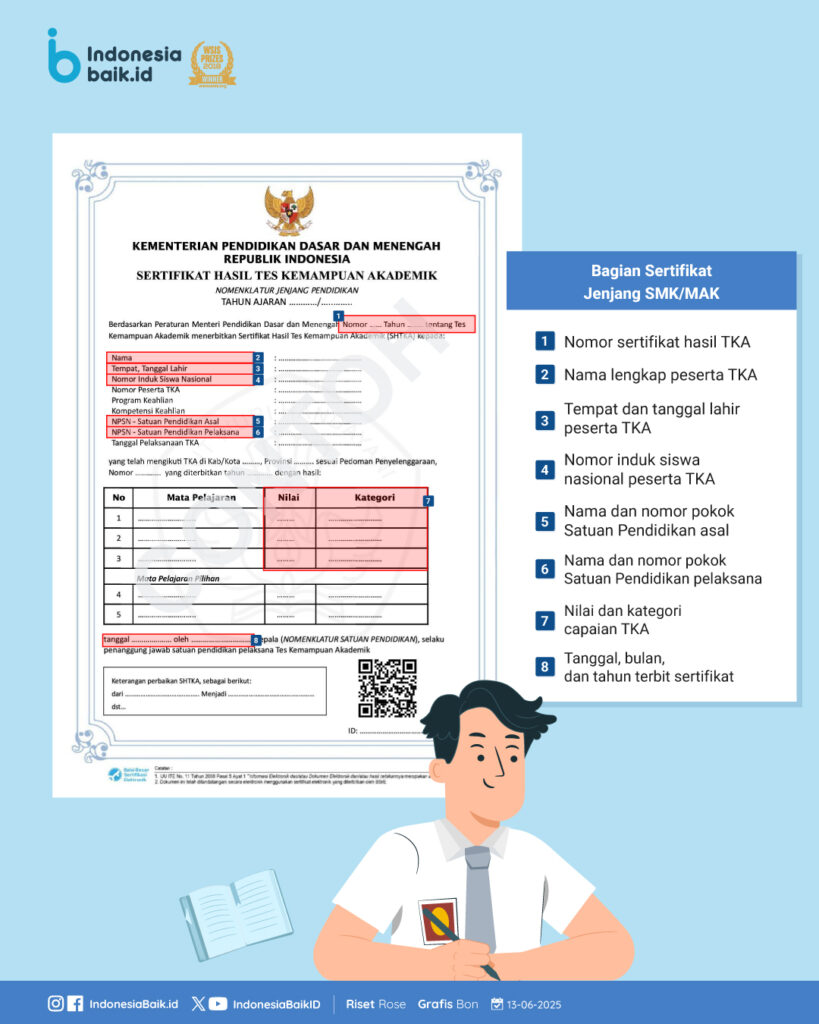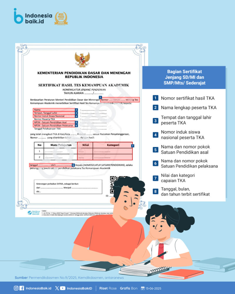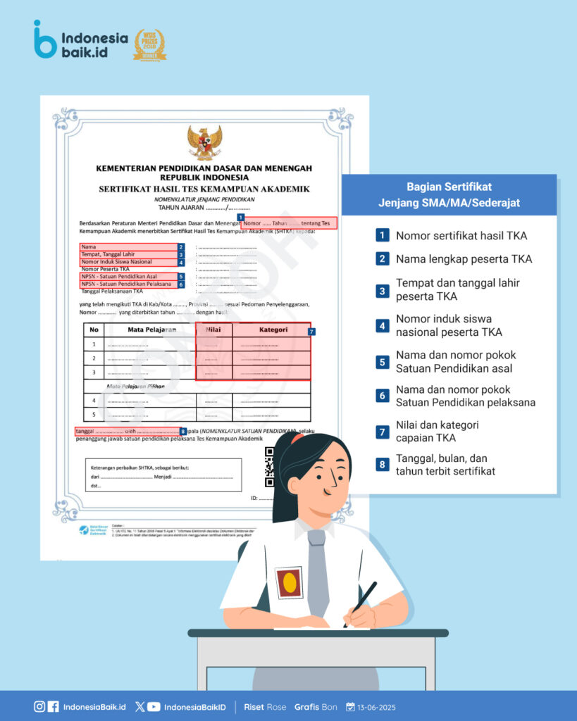 Apa Saja Isi Sertifikat TKA? Sertifikat ini bukan sekadar kertas biasa. Di dalamnya tercantum data valid dan rinci, meliputi: